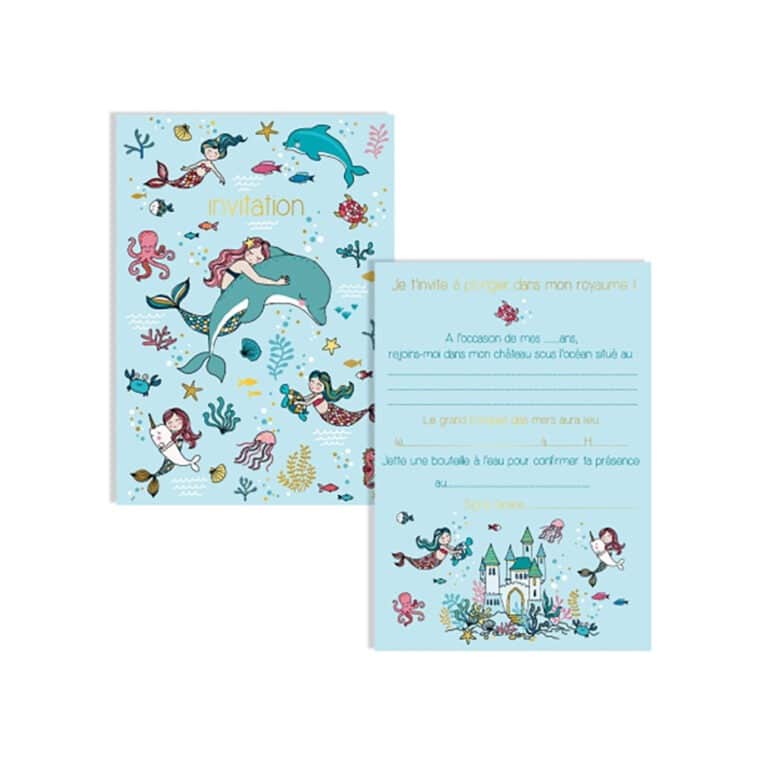 8 Cartes d’invitations et 8 enveloppes – Sirènes