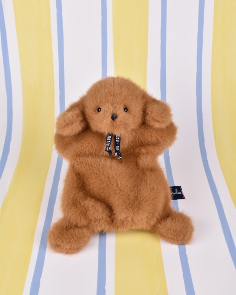La marionnette chien Sowen séduit par son allure douce et chaleureuse. Sa teinte caramel salé, subtile et intemporelle, apporte une touche réconfortante. Pour cela elle attire immédiatement le regard des enfants comme des adultes.