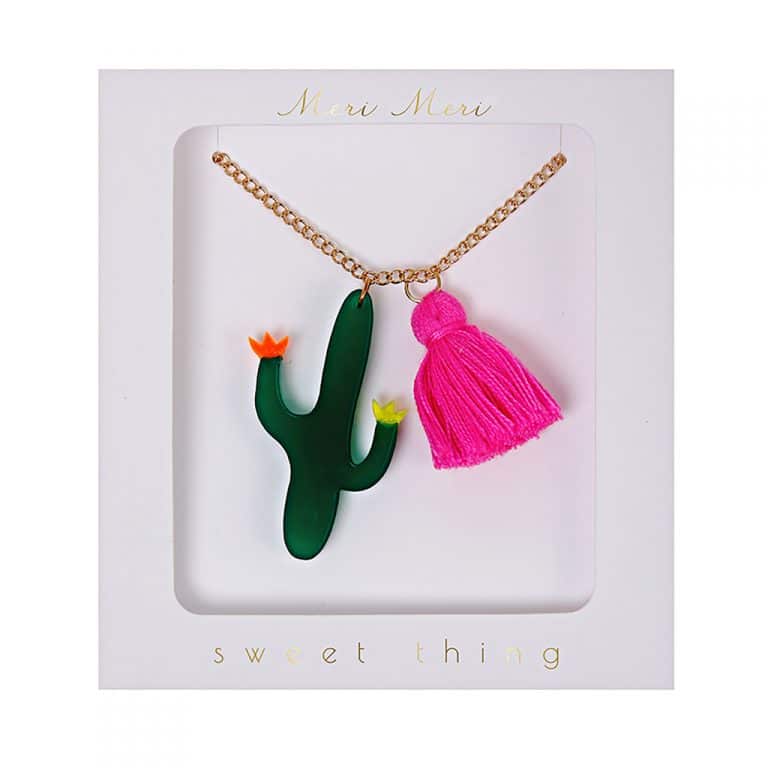 Collier Cactus et son pompon rose
