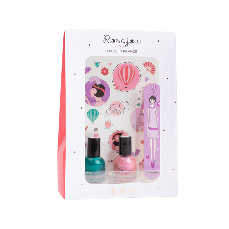 Ce joli coffret à ongles enfant ROSAJOU contient tout le nécessaire pour se mettre du vernis aux pieds mais aussi aux mains, sans solvant chimique !