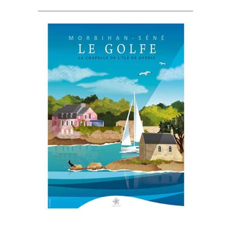 Cette jolie affiche “Le Golfe” de la chapelle de Boëdic de la marque Etoile de sel est parfaite en décoration. Elle possède de belles couleurs et apportera une petite touche Bretonne à votre intérieur !