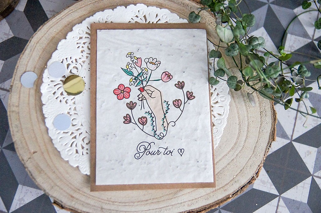La carte postale ”pour toi” est une belle attention. La personne à qui vous l’enverrez pourra choisir de la garder ou alors de la planter !