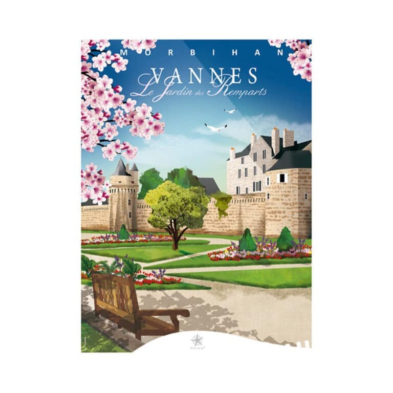 Optez pour cette carte ” Les remparts ” de Vannes de la marque Etoile de sel qui est joliment illustrée. Elle montre les jardins fleuris avec les remparts en arrière plan. Offrez cette carte postale à vos proches ou bien accrochez la sur vos murs afin de rajouter un petit plus à votre décoration.