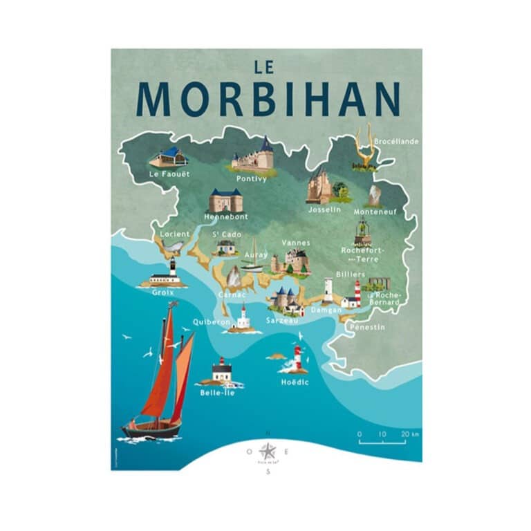 Une jolie carte représentant les principaux lieux qui ont fait l’histoire du Morbihan.