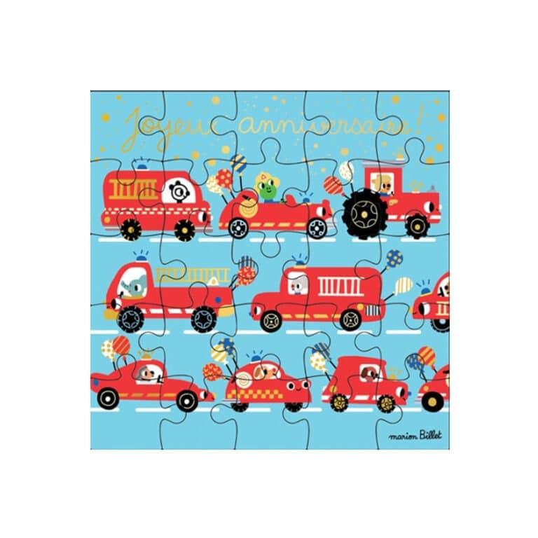 Cette carte puzzle “Joyeux anniversaire” est une façon originale pour souhaiter l’anniversaire d’un enfant fan de pompier !
