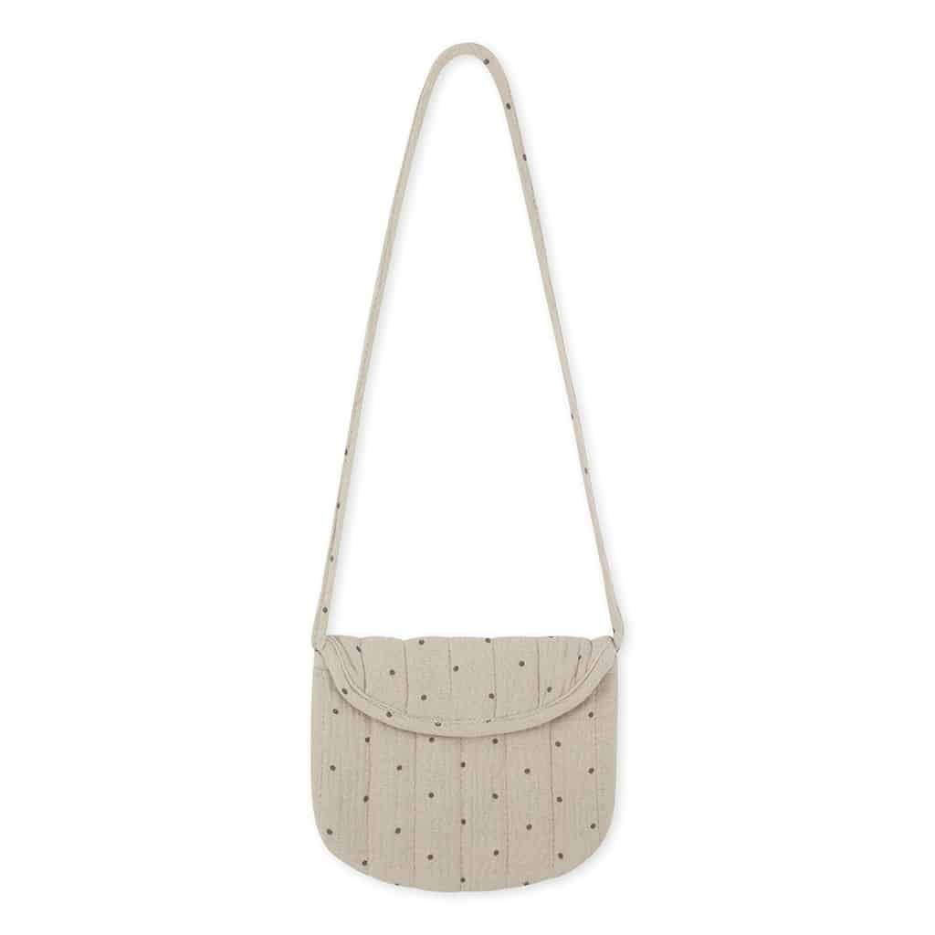 Ce joli sac souple fabriqué en mousseline de coton se ferme par un seul bouton recouvert de tissu. Il sera parfait pour accompagner maman pour les sorties shopping mais aussi pour jouer à la marchande !