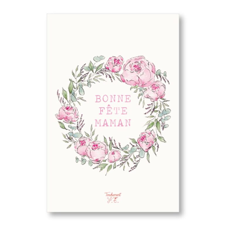 - Verso style carte postale avec une partie correspondance et adresse ainsi qu’une jolie phrase “Célébrer tendrement le bonheur de t’avoir pour Maman…”