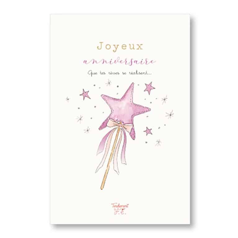 - Verso style carte postale avec une partie correspondance et adresse ainsi qu’une jolie phrase “Fêter ce joli jour d’anniversaire“