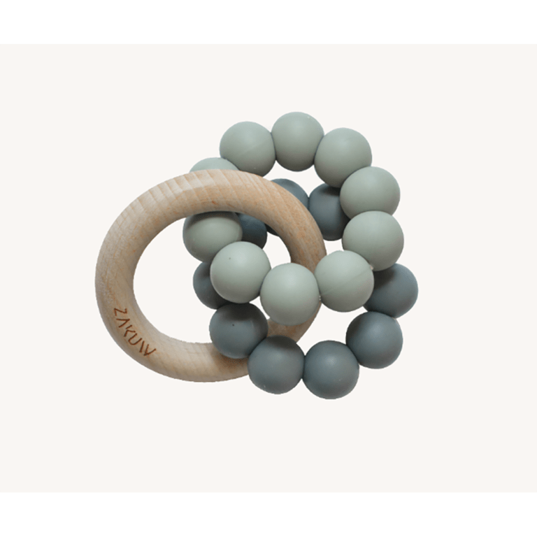 Ce très joli anneau de dentition sedna en bois et en silicone de la marque Zakuw soulagera les gencives de votre bébé !