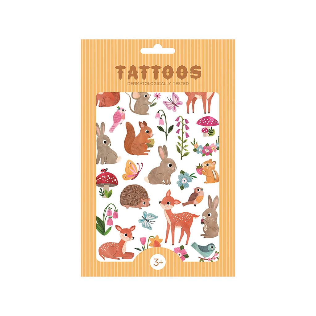 Deux jolies planches de tatouages éphémères. En effet, ils représentent les animaux de la forêt ! Aussi, ils sont aux normes CE et ont été testés dermatologiquement. De plus, ils sont illustrés par Rebecca Jones.